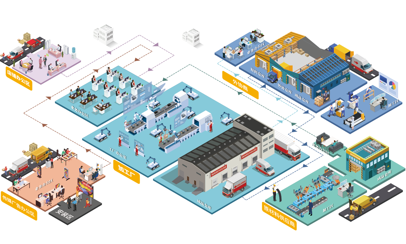 业务办公区(财务部,采购部) 下单:BOM信息导入,精益生产计划,科学合理排产。