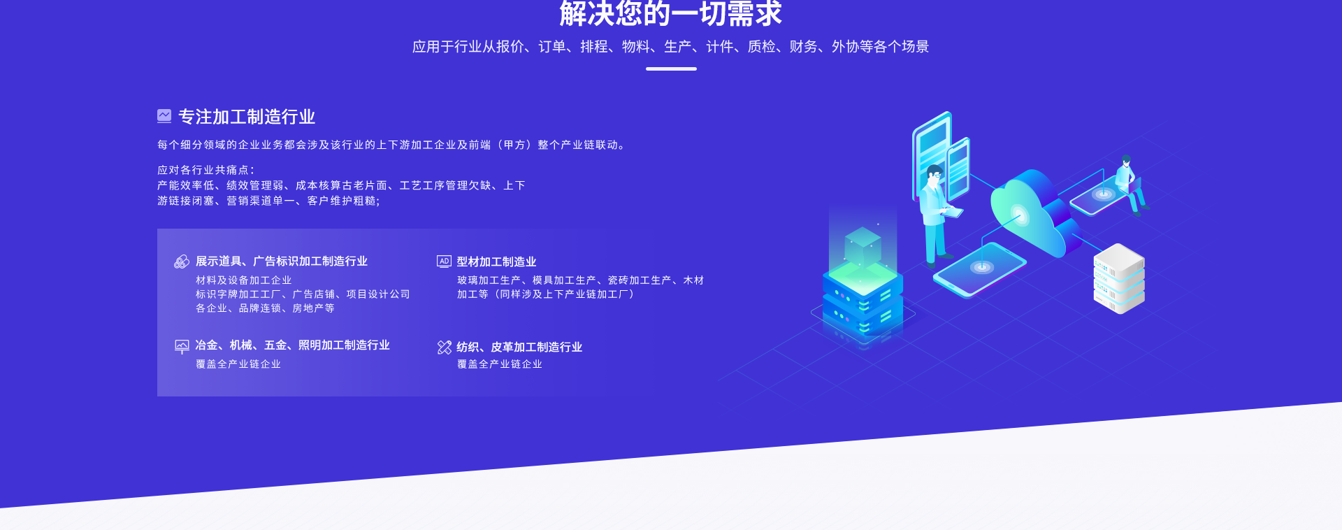 晓觅云 ,专注服务于生产制造行业,助力行业构建数字化智能工厂,实现智能排产和数字BOM,可视看板,进度跟踪,移动办公,数字绩效,设计、生产、安装一体化,财务成本核算一体化,赋能企业高效协同管理。目前致力于打造集数字实体、深度营销、AI报价为一体的开放云平台及垂直行业的SaaS平台,形成智能制造的跨地域、多行业、高匹配数字供给营销合作双平台,构建云端生态体系,共享商业生态圈,加速企业数字化转型升级。